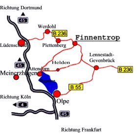 Mit dem Auto fahren Sie über die A 45 Abfahrt Meinerzhagen oder Olpe.